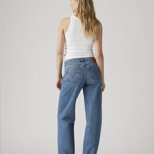This is a pair of Levi’s Low Loose women’s jeans in the Real Recognize Real wash. The style is low rise with a straight, wide leg and a relaxed fit through the hip and thigh.
