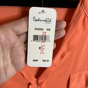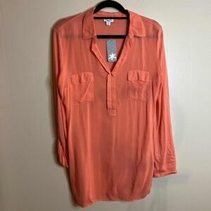 Splendid Shirting Medium Long Sleeve Top In Apricot