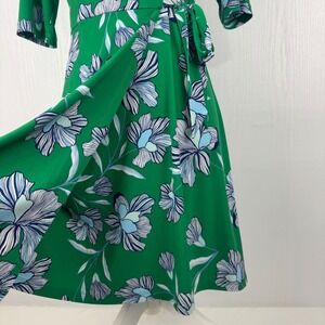 Vince Camuto Green Floral Faux Wrap Dress Size 4 V-Neck Above Knee Length