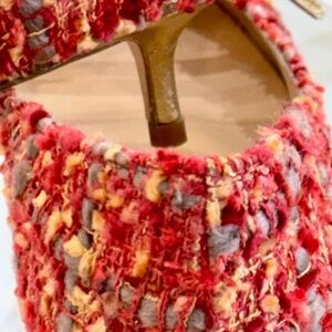 Elegant red tweed pumps by Butter. Features a stylish gold accent. Perfect for versatile wear. New