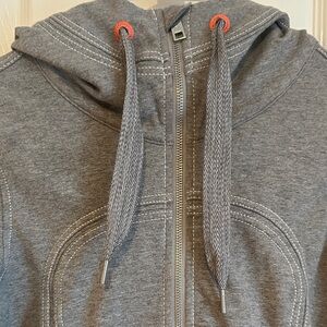 Lululemon Vintage Hooded Scuba Full Zip in Heather Grey/Pink Detail Size 8