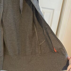 lululemon scuba, vintage lululemon, full zip hoodie, athleisure, grey hoodie, pink detail, workout jacket, casual wear