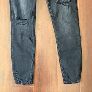 Free people Black Distressed raw hem skinny jeans