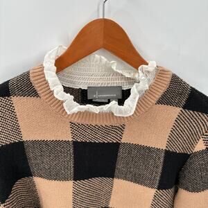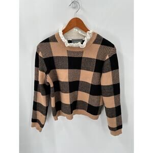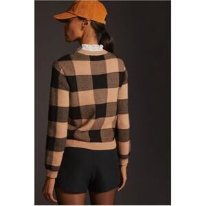 ANTHROPOLOGIE Tan Black Plaid Ruffle Collar Sweater // S