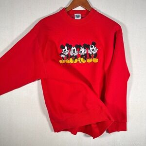 Vintage Disney Mickey Mouse Embroidered Crewneck Sweatshirt | Red | Large | USA