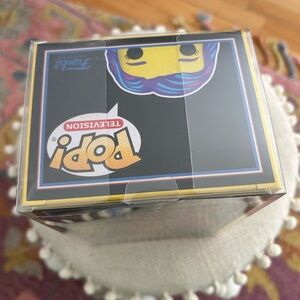 Bright yellow Funko figure of Eleven with multicolor accents. Special edition collectible. Comes w protector.