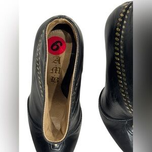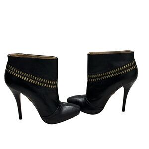 Women’s L.A.M.B. Black Leather W/ Gold Accent Studded Stiletto Booties: Size 6