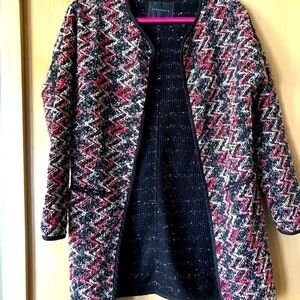 Gorgeous Sanctuary long tweed coat. Black base with pops of red, white & pink. Only worn a few times in great condition. Longer style to hit mid thigh. Classic style.