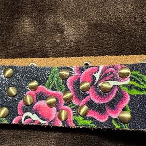 Beautiful Ed Hardy Floral Purple Leather Belt with Gold Studs