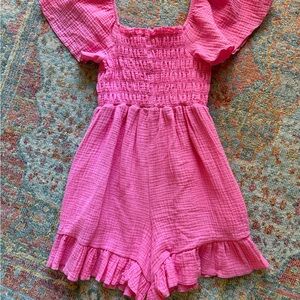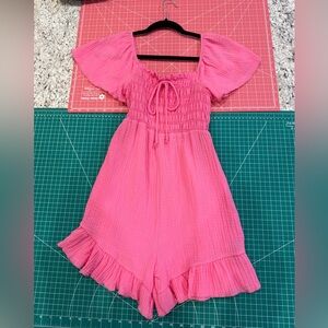 Women's Carole Christian Pink Smocked Ruffle Hem Romper Flutter Sleeve
