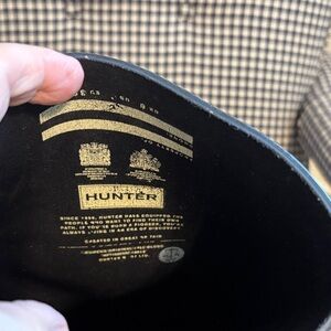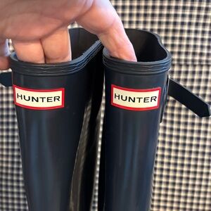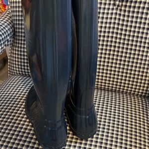 Sleek navy blue boots by Hunter. Ideal for wet weather.