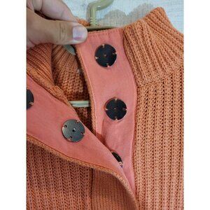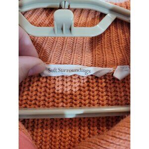 Soft Surroundings Sweater Womens Petite Medium Orange Ribbed Tunic Button Neck