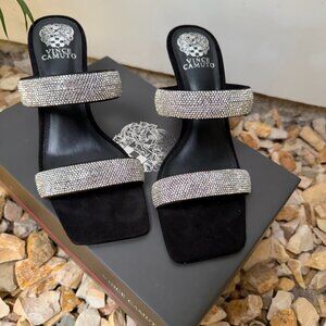 Vince Camuto Aslee Rhinestone Embellished Black & Silver Crystal Dress Sandals