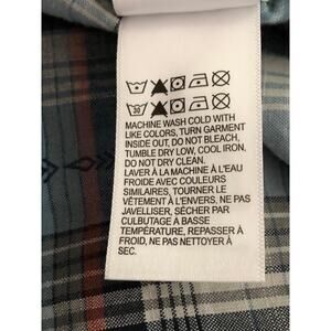 100% cotton, machine wash, two front flap pockets, plaid, button-up