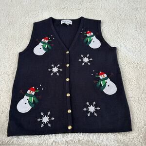 VTG Christmas Vest Women’s Sz Small Snowman Holiday 90s Mom Retro Croft & Barrow
