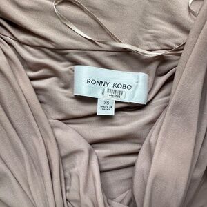 Asymmetrical neckline Ronny Kobo dress. Worn once for an event that lasted less than 5 hours, in great condition. A few small imperfections as pictured in the original images, not noticeable when wearing.