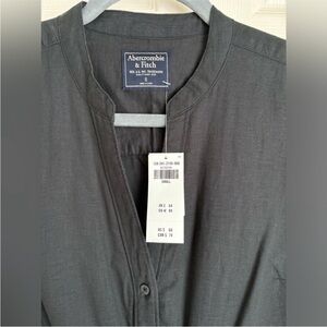 NWT New Abercrombie & Fitch Linen Blend Button Up Long Sleeve Cinch Waist Dress