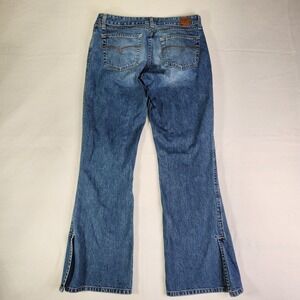 Keywords: BKE denim, bootcut jeans, side slit jeans, Y2K style denim, 100% cotton jeans denim, medium wash jeans, vintage BKE, low rise jeans, casual denim pants, womens bootcut jeans, distressed denim look, classic denim style