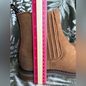 Stylish brown Chelsea boots with elastic side panels. Durable and comfortable for everyday wear.