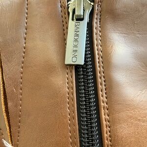Classic and versatile two-tone knee-high riding boots by Bandolino. These boots feature a timeless riding silhouette with a sleek black shaft contrasted by a rich brown upper cuff for a polished, equestrian-inspired look.
