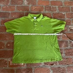 This Lacoste polo shirt in a striking green shade is crafted from soft cotton, ensuring a comfortable and breathable wear. Its classic polo collar and short sleeves make it a versatile choice for any casual occasion. The solid color design adds a touch of elegance to your everyday style. Size is 8 which is an XXL. A few imperfections as pictured. See photos for approximate measurements. In good pre worn condition.