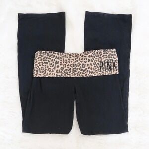 victoria's secret pink yoga fold over flare pants leopard waistband