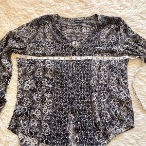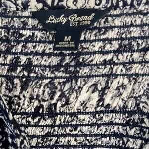 Lucky Brand Long Sleeve Blue Cream Blouse Top Button Up Peasant V-Neck Women's M