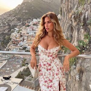 House of CB Corset Floral Lace Trim Midi Sundress S Plus Cup - Rose Print
