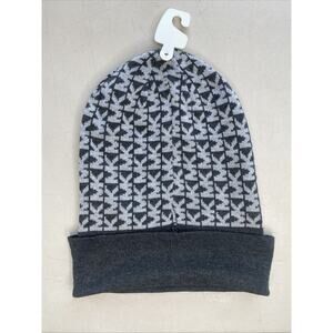 MICHAEL KORS NEW Hat Womens MK MONOGRAM Gray Logo Stretch Winter Beanie