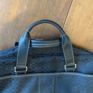Coach Hudson Black Briefcase Travel Bag Tote Signature C Print Logo Canvas Black