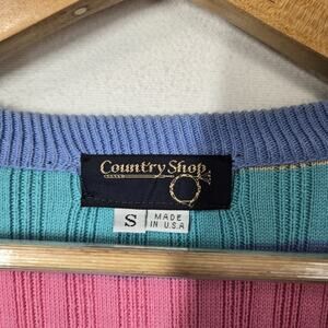VTG Country Shop Cardigan Sweater Multi Rainbow Striped 100% Cotton Union Made Made in USA. Excellent pre-owned condition with no known flaws.