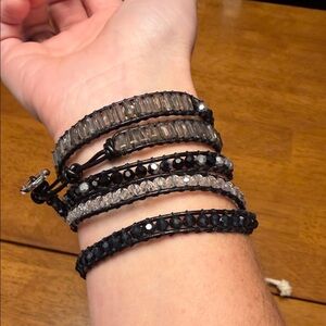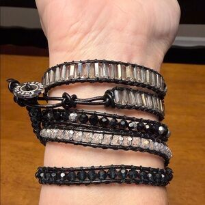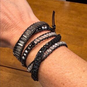 Chic wrap bracelet with black and silver beads. Perfect for adding elegance to any outfit.