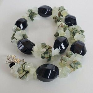 Ross-Simons Sterling Silver 925 Chunky Statement Heavy Bead Choker Necklace with Jade Green Lace, Black Agate & White Quartz Genuine Gemstones