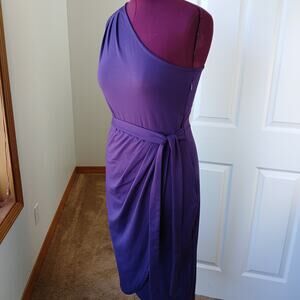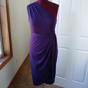 Yathon Purple One Shoulder Wrap Tie Dress XL jersey knit comfy cocktail midi