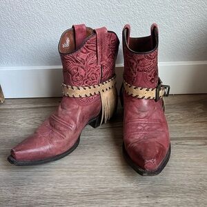 Eight Second Angel Angelica Rose Embossed Fringe Heel Leather Cowgirl Boots
