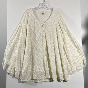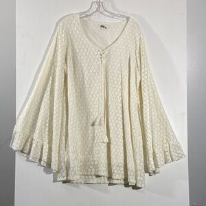 This elegant cream blouse features stylish flared sleeves and a delicate pattern, perfect for any occasion. Its soft fabric ensures comfort and a flattering fit.