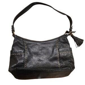 The Sak Keira Bohemian StyleBlack Genuine Leather StuddedHobo Shoulder Bag Black