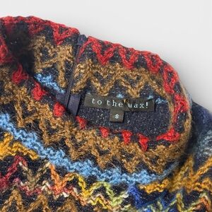 Vintage To The Max multicolor zigzag knit sleeveless mock-neck — an iconic 90s standout. The fuzzy textured knit, bold chevron pattern, and rich color palette give it that true Missoni-inspired, artisan vibe. Soft, stretchy, and wonderfully unique.
