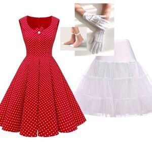 4PCS Bundle Minnie Mouse Costume 1950s Retro Pinup Vintage Dress & Accessories Set