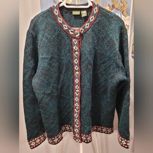 Vintage LL BEAN Nordic Fair Isle Button Cardigan Merino Wool Size Large