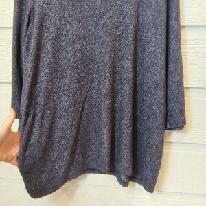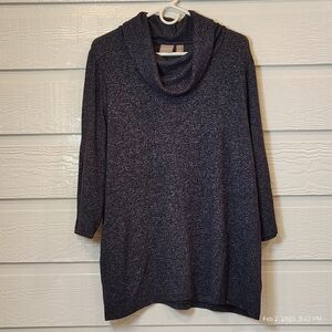 Chico’s Women’s Navy-Blue Marl 3/4 Sleeve Cowl Neck Sweater SZ 3 or XL POCKETS