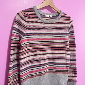 gap fair isle sweater small, gap wool blend striped sweater, grey multicolor fair isle knit, gap merino wool sweater women, winter fair isle crewneck, cozy wool blend sweater small, gap multicolor stripe knit