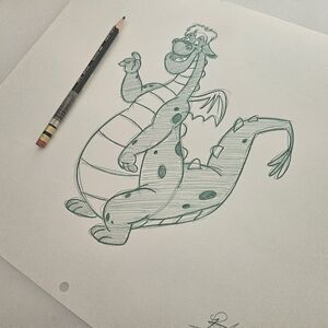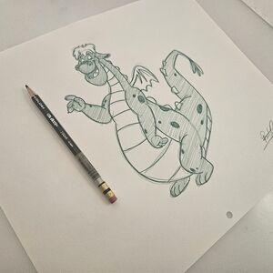 Disney Elliott Pete's Dragon Drawing/Sketch Animation Art Signed