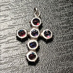 Antique Czech Colorful Iris Glass Sterling Cross Pendant Charm 1920s