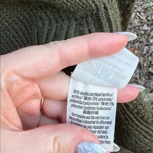 Chic V-neck sweater in dark green. Ideal for layering. Good condition, smoke free home. Would look great if you shave it down with a sweater shaver. Selling as is. Price reflects. Chunky and oversized.