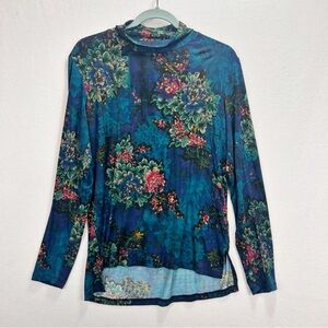 Johnny Was BISCAY Bouquet Mock Neck Top Blouse Size M