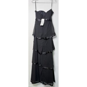 Christina Wu House of Wu Black Tiered Strapless Evening Gown Satin Trim 8