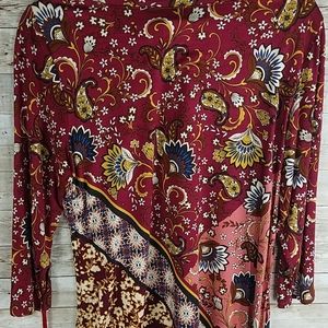 NWT, Ruby Red, 0171, Red Floral boat neck Top, jeweled boat neck top, 3/4 to long sleeves, string tie on left side of the top 99% Rayon, 5% spandex. Sleeves measures 18.5" Sz PM