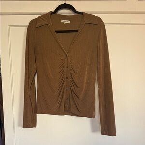 Madewell Metallic Rib Ruched Long-Sleeve Top