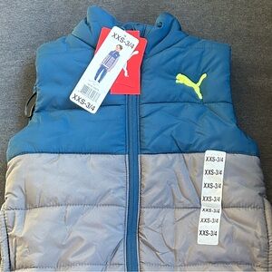 Stylish Puma vest for kids. Teal and gray color scheme. Perfect for layering. Features iconic logo.for 3 years old